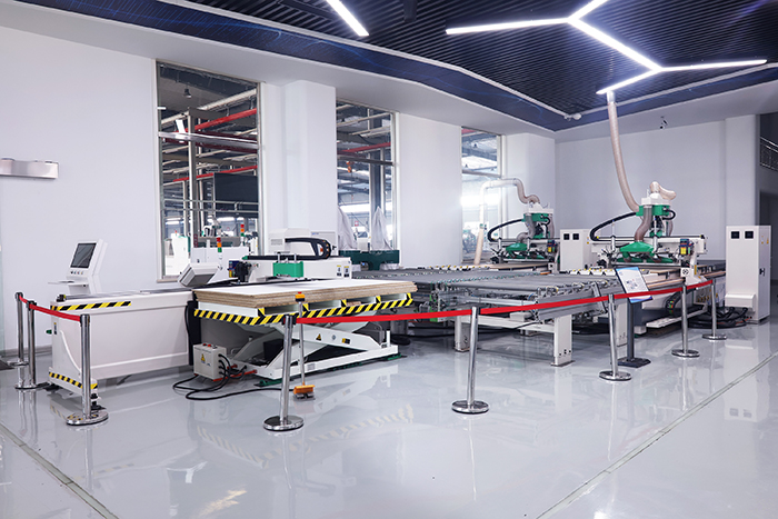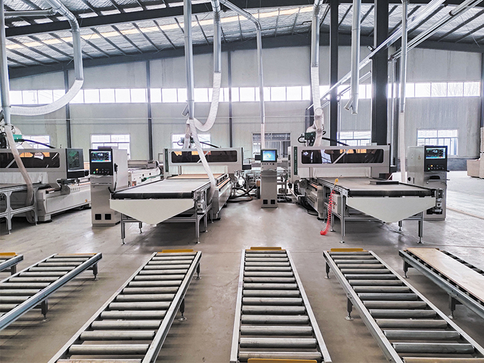 3,同一訂單可以快速推進(jìn),中控系統(tǒng)自動(dòng)分配板材進(jìn)入可加工工位,有效推進(jìn)同批次同訂單同花色板材依次加工。