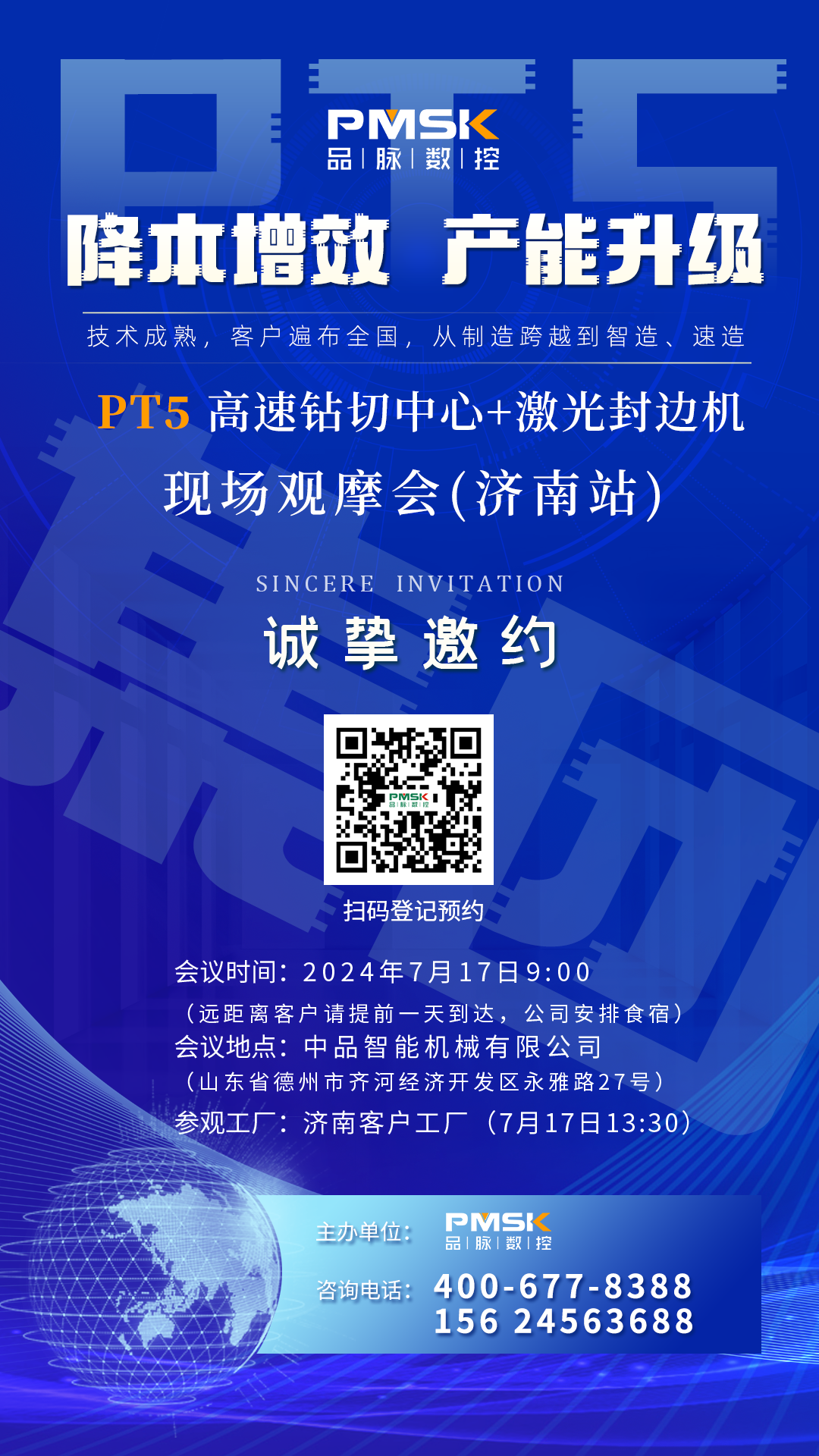 2024年7月17日,品脈數(shù)控在山東總部舉辦PT5高速鉆切中心,鉆切一體機(jī),激光側(cè)孔封邊機(jī)現(xiàn)場(chǎng)觀摩會(huì),屆時(shí)將展示最新板式家具生產(chǎn)模式,先自動(dòng)貼標(biāo),然后再上下打孔,在切割開(kāi)料,然后激光封邊打側(cè)孔,整個(gè)流程,僅需一人下料,一人封邊送板,一人封邊下板,降本增效,8小時(shí)加工120+張大板,產(chǎn)能升級(jí),僅需兩臺(tái)設(shè)備(PT5鉆切一體機(jī)+PUR激光側(cè)孔封邊機(jī))就可以解決板式家具整條生產(chǎn)工藝,歡迎新老客戶到真實(shí)定制家居生產(chǎn)現(xiàn)場(chǎng),解決對(duì)精度、效率、成本的疑慮,現(xiàn)場(chǎng)為您解答一切問(wèn)題,7月17日,我們等您來(lái)參觀!