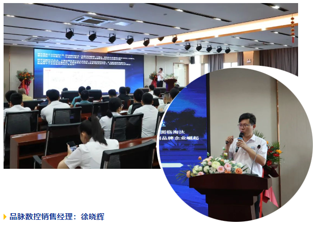 品脈數(shù)控銷售部經(jīng)理徐曉輝帶來了《應(yīng)對(duì)新形勢,激發(fā)新思路,建立新優(yōu)勢-品脈數(shù)控自動(dòng)化助力家具企業(yè)提升競爭力》的精彩分享,詳細(xì)闡述了PT5系列設(shè)備以及單元體連線在提升生產(chǎn)效率、降低生產(chǎn)成本方面的顯著優(yōu)勢,通過實(shí)現(xiàn)生產(chǎn)流程的自動(dòng)化與智能化提高家具企業(yè)競爭力。